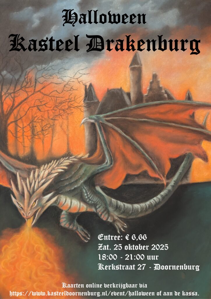Op Kasteel Doornenburg vinden tijdens Halloween weer angstaanjagende taferelen plaats. Ben jij niet bang aangelegd? Durf jij het aan om een drakenjager te worden? Kom dan op 25 oktober tussen 18.00 en 21.00 uur naar ‘Kasteel Drakenburg’ en verlos Doornenburg van de draak!